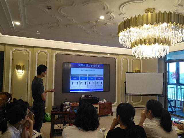 2018年6月25日,自然之聲湖南區域第二批中級驗配師,在美麗的梅溪湖金茂府舉行培訓交流會,培訓旨在提升員工專業化素質,加強企業凝聚力和執行力,在為期五天的培訓中,現場氣氛活躍,我們的培訓老師更是傾囊相助、有問必答,讓在場的培訓人員真真切切的學到拿得出手的技術、說得出口的話術。培訓老師通過舉例子,現場提問互動的各種方式調動培訓人員的熱情,深切領悟,培訓人員也積極參與互動當中,結合自己的實際工作,認真回答老師提出問題,把平時在驗配工作中遇到的各種疑難雜癥提出來,大家一起研究、探討,力爭從用較好的專業方法解決各類聽障患者需求。